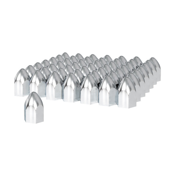 1-1/2" X 2-3/4" Chrome Plastic Bullet Nut Covers - Push-On (60 Pack)