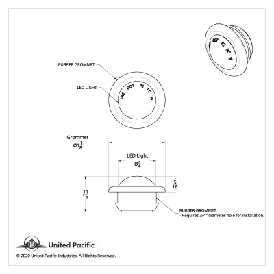2 LED mini clearance/marker light. Polycarbonate lens sonically sealed to housing to prevent moisture intrusion. Requires 3/4" diameter hole for installation. Mounts with enclosed rubber grommet...
