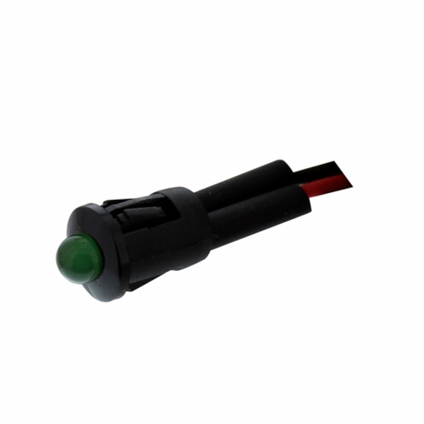 Snap-in indicator light with 1 super bright LED. Requires 1/4" diameter hole for installation. Wire length approximately 7".