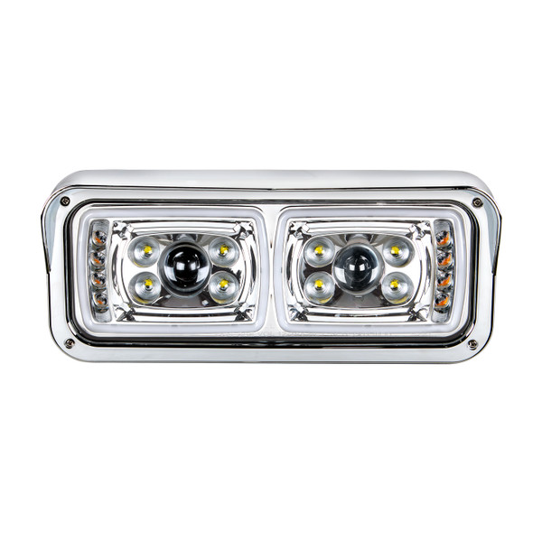High Power LED "Chrome" Projection Headlight With LED Turn Signal & Position Light Bar - Passenger