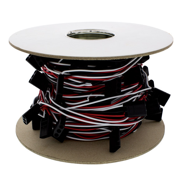Waterproof over-molded plug housing. Quality insulated 16 gauge wire. 0.180" female bullet type plug. Each roll is approximately 100' long, with 100 plugs. 12" lead between plugs.