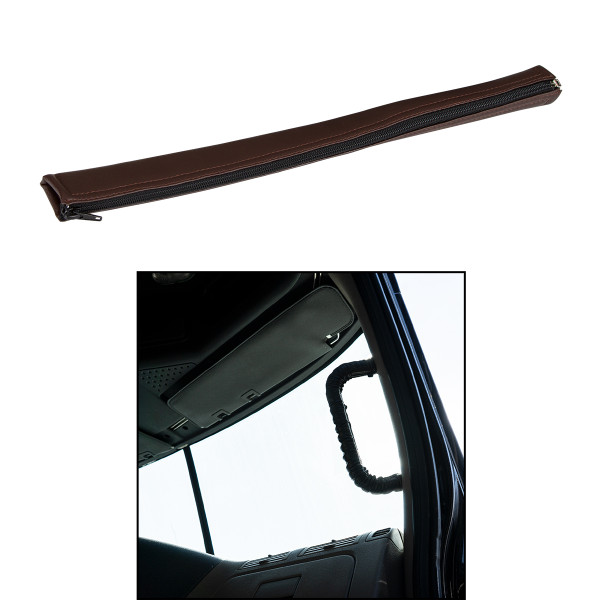 Comfortable padded grip for driver assist bar. Engineered leather - long lasting look & feel of leather. Easy Installation with high strength zipper. WARNING: Sharp objects may damage and cause...