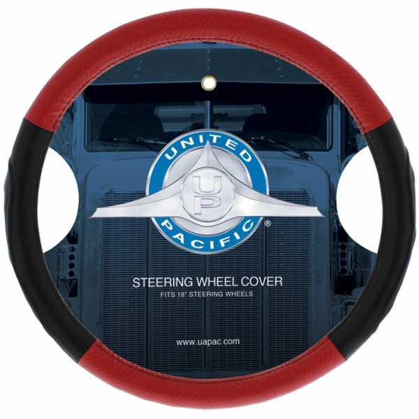 18" Engineered leather, carbon fiber style steering wheel cover. Engineered leather for long lasting look & feel. Large grip diameter reduces fatigue. Unique euro style carbon fiber color design...