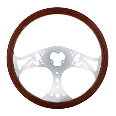 18" wheel rim steering wheel with chrome spoke. 3 spoke "lady" steering wheel. Steering wheel only, hub and horn assembly available separately. Mix and match with united pacific hub and designer horn...