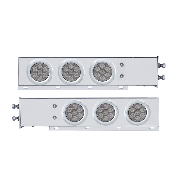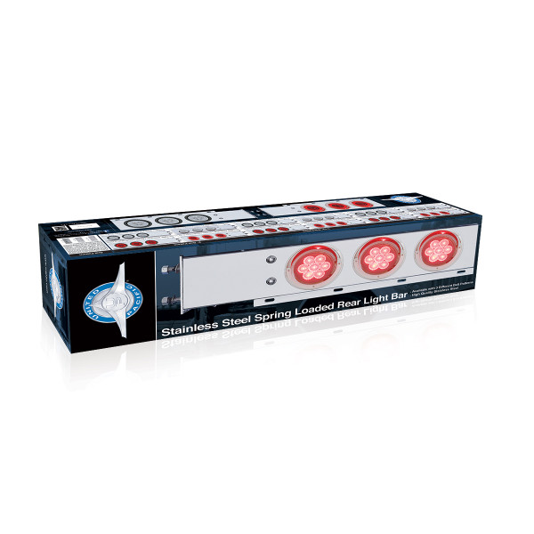 Spring loaded rear light bar with six 4" LED lights. Polished 430 stainless steel three 4" light cutouts, item number 22301. 2-1/2" bolt pattern. 7 red LED w/ red lens S/T/T light, item number 39117B...
