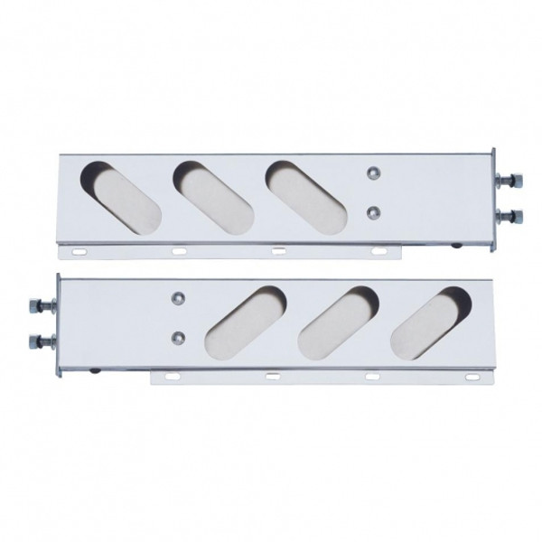 Spring loaded rear light bar with 6 slanted up oval light cutouts. Each light bar has three slanted up oval light cutouts (total 6 cutouts). With 2-1/2" bolt pattern.