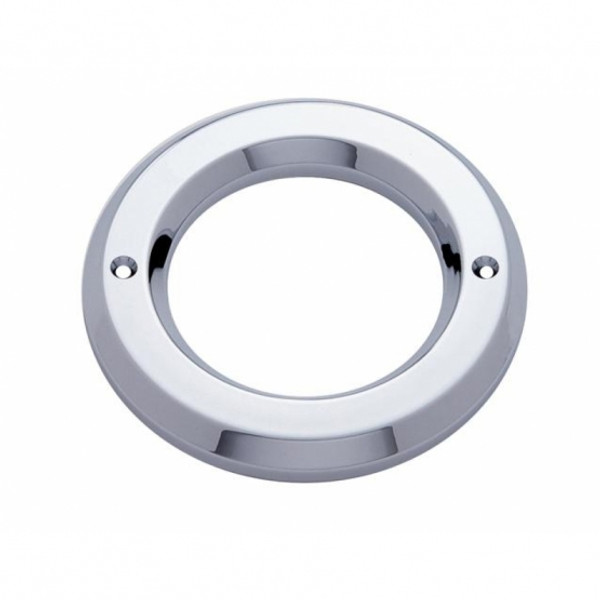 Chrome plastic bezel for grommet mounted light. Beautiful high quality chrome plated finish with triple chrome plating process. 2-1/2" round bezel without visor. Fits on various mounting grommets...