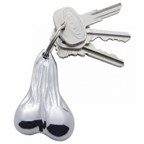 2-1/2" Small Die-Cast Low-Hanging Balls Novelty Key Chain - Gold