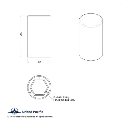 - Fits over standard 33mm lug nuts on hub piloted wheel.