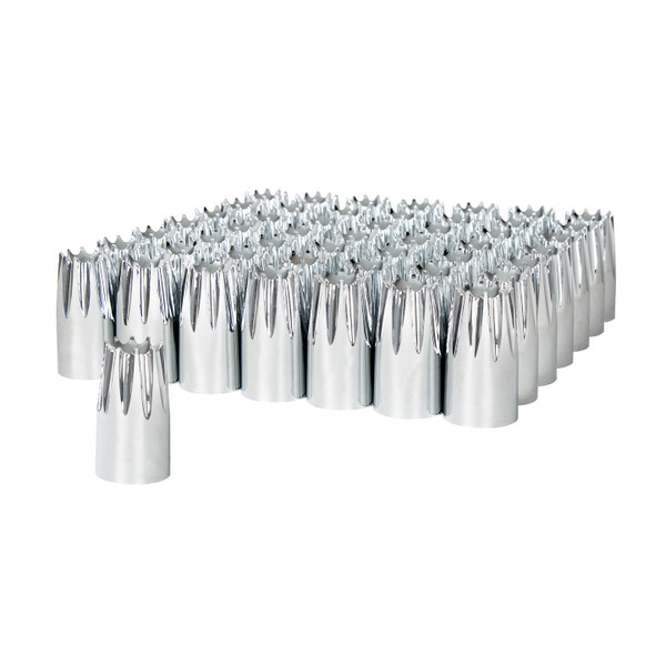 Chrome plastic 33mm thread-on crown nut cover. Beautiful high quality chrome plated finish with triple chrome plating process. Fits over standard 33mm lug nuts on hub piloted wheels. Designed to...