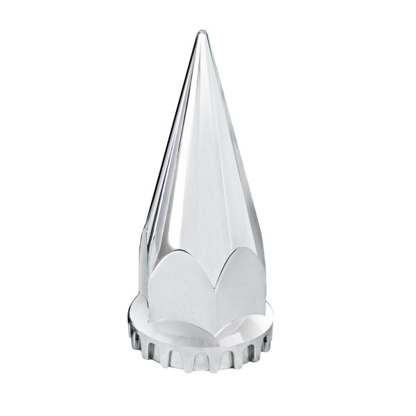 Beautiful high quality chrome plated finish with triple chrome plating process. Spike shape. Fits over standard 33mm thread-on nuts on hub piloted wheel. Designed to cover up and hide the lug nut...