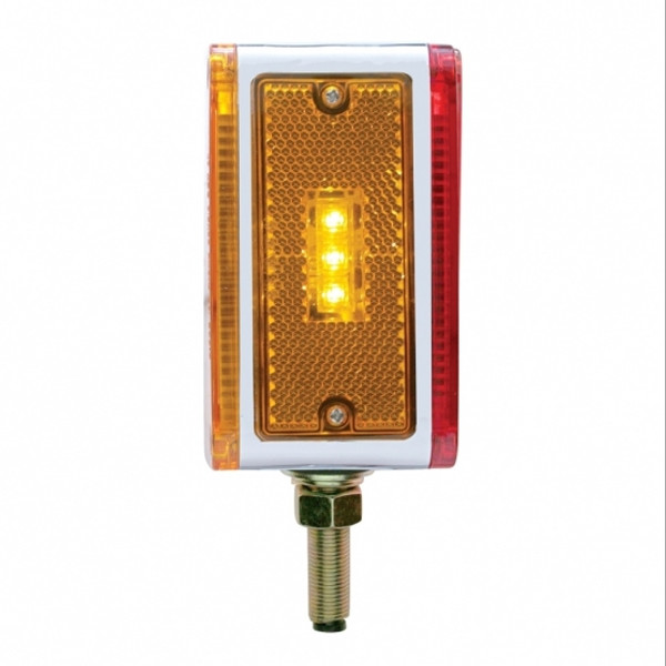Polycarbonate lens sonically sealed to housing to prevent moisture intrusion. Square double face single, stud reflector with 18 amber LED + 3 amber LED (side marker) + 18 red LED. Heavy duty chrome...