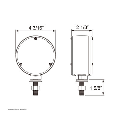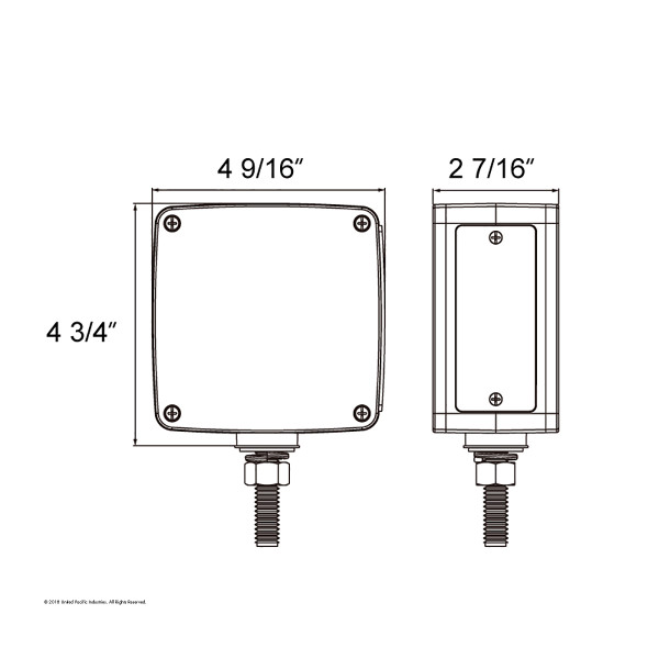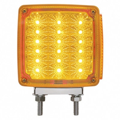 Polycarbonate lens sonically sealed to housing to prevent moisture intrusion. Square double face single, stud reflector with 18 amber LED + 3 amber LED (side marker) + 18 red LED. Heavy duty chrome...
