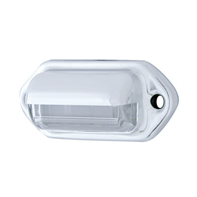 High quality polycarbonate lens with epoxy sealed circuit board. Beautiful chrome plated housing. Mounting pad and screws included. Mounting holes are 2-1/16" apart. 12VDC, hard wired with 2 wires...