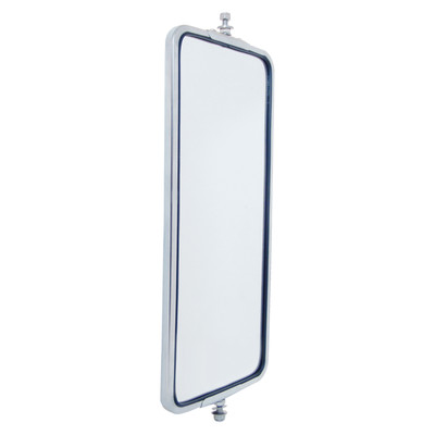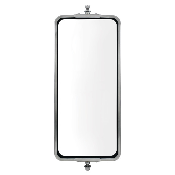 "West Coast" style mirror with dual funtion LED light. Highly polished 430 stainless steel finish for durability and shine. 12 volt heated mirror and LED. Threaded mounting studs are 5/16 dia.