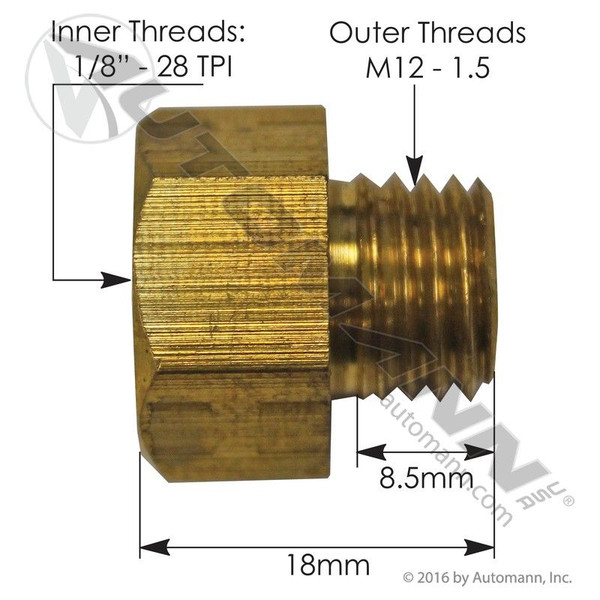 - Outer Male 12mm-1.5, Inner Female 1/8-28 BSP
