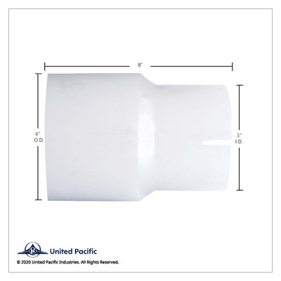 High quality aluminized steel for excellent rust resistance. For use with connecting 6" outside diameter exhaust pipe to 5" outside diameter exhaust pipe.