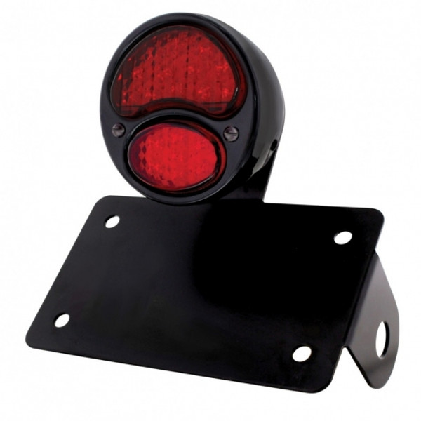 Bobber style incandescent 1928 ford model "a" tail light with license light. Black license bracket. Available with black rim and black housing. Perfect for custom motorcycles.