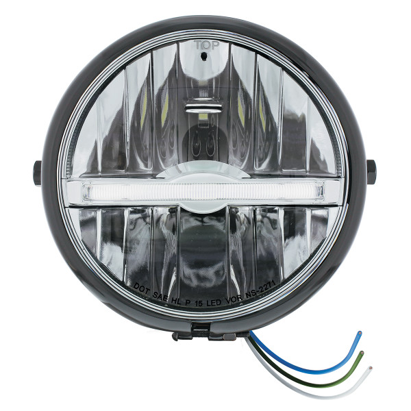 Chrome 5-3/4" Motorcycle Headlight 9 LED Bulb With White LED Light Bar - Side Mount