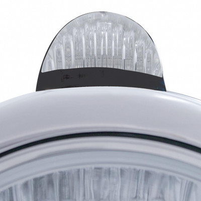 Black powder coated steel headlight housing with matching top mount cover and beautiful chrome plated bezel. Fully assembled with crystal clear lens LED headlight, item # 31378. Headlight features 34...
