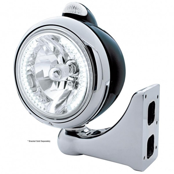 Black powder coated steel headlight housing with matching top mount cover and beautiful chrome plated bezel. Fully assembled with H4 halogen bulb, item # a5023-3. Ready to use, can also be painted to...