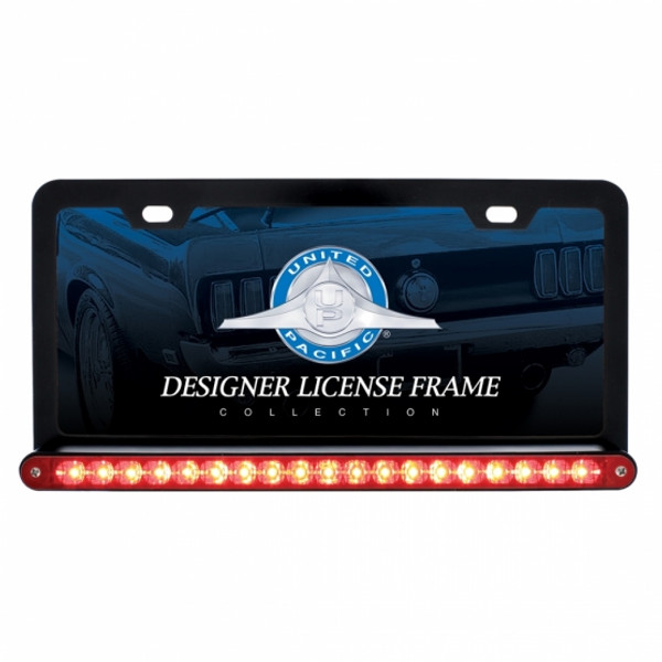 Black License Plate Frame With 19 LED 12" Reflector Light Bar - Red LED/Red Lens