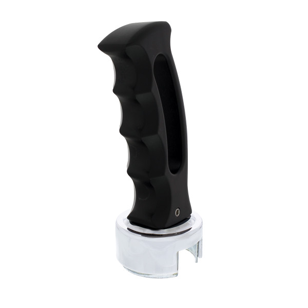 Chrome "slot" pistol grip shift knob. Fits 13/15/18 speed gearshift knobs, machined grip. Mounting adapter, item # 70603B and "gatling" pistol grip knob: item # 70673 (black)/70659 (chrome) available...