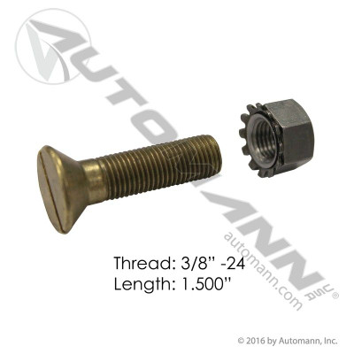 - Brass, 3/8in-24 X 1-1/2in, w/Kep Nuts