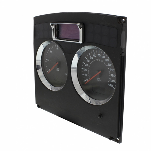 Chrome plastic center dash indicator bezel for Kenworth. Beautiful high quality chrome plated finish with triple chrome plating process. Available for manual transmission.