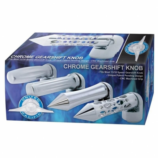 Chrome "Dallas" gearshift knob, CNC-machined grip. Fits 13/15/18 speed gearshift knobs with mounting adapter. Mounting adapter item # (70600B) and chrome "Dallas" grip item # (70622B) available...