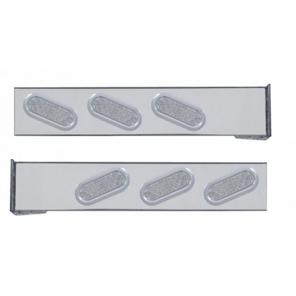 Chrome Flange Mount Rear Light Bar With Six 19 LED Oval Lights & Bezels - Red LED/Red Lens