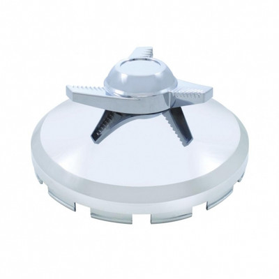 • Chrome plastic front hub cap with spinner for United Pacific front axle cover.