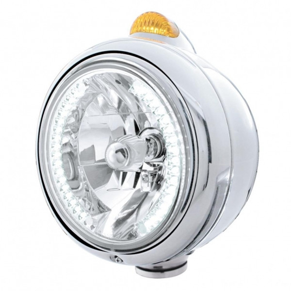 Chrome Guide 682-C Headlight H4 With White LED & Dual Mode LED Signal - Amber Lens