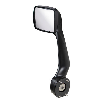 High quality mirror assembly with black mirror cover. Complete hood mirror, includes mounting arm, backing plate and hardware. Feature original style break-away internal mechanism. Passenger side...
