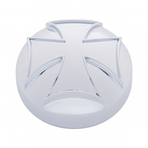 Chrome plastic iron cross air valve knob cover. Snaps onto United Pacific air valve knob only: item # 23010-1.