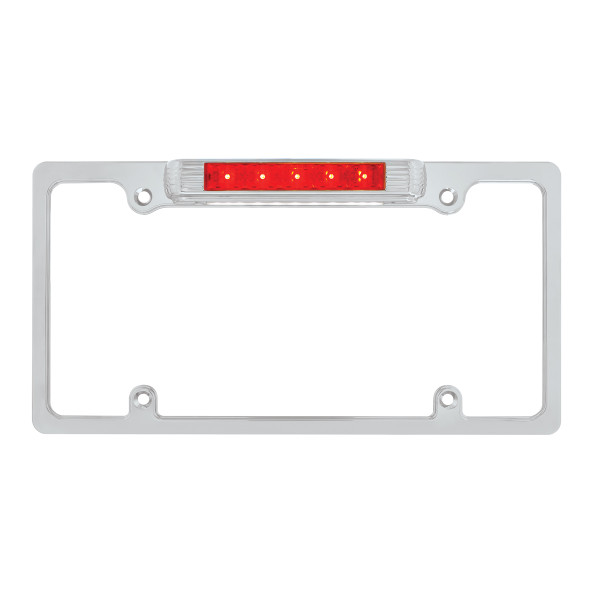 Chrome Motorcycle License Plate Frame With 3rd Brake Light - Red LED/Red Lens