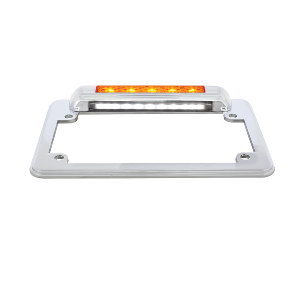 Chrome License Plate Frame With Back-Up Light - White LED/Clear Lens