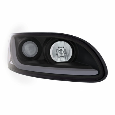 Black Projection Headlight W/LED Dual Function Light Bar For Peterbilt 386 (2005-2015) & 387 (1999-2010)- Passenger