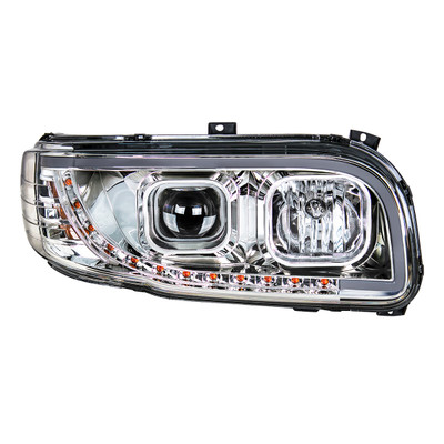 Chrome Projection Headlight With LED Turn & DRL For Peterbilt 389 (2008-2022) & 388 (2008-2015)- Driver