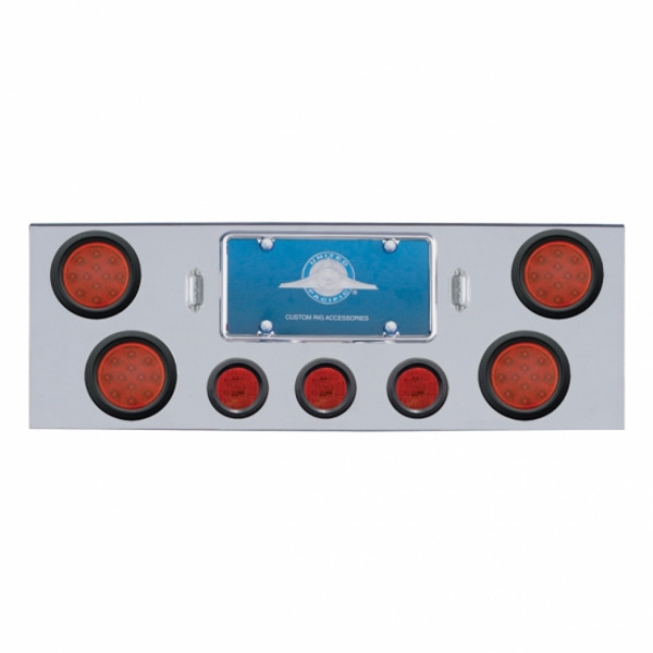 CR Rear Center Panel With 4X 12 LED 4" Reflector Lights & 3X 13 LED 2-1/2" Lights & Visors -Red LED & Lens