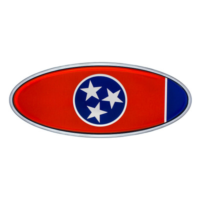 Beautiful chrome plated finish with triple chrome plating process. Die-cast & beautifully chrome plated oval emblem with Tennessee state flag graphic. 7-7/8 X 3-1/4", aluminum flag decal...