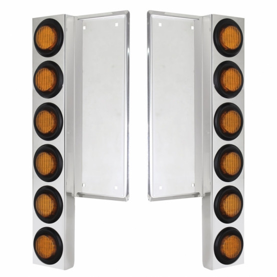 FL SS Front Air Cleaner Bracket W/12X 9 LED 2" Beehive Lights -Amber LED & Lens (Pair)