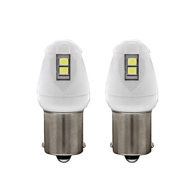 8 High Power SMD LED's, 250 lumens. Replaces most #1156 and #89 applications. 12 Volt, single contact with straight-across pins.