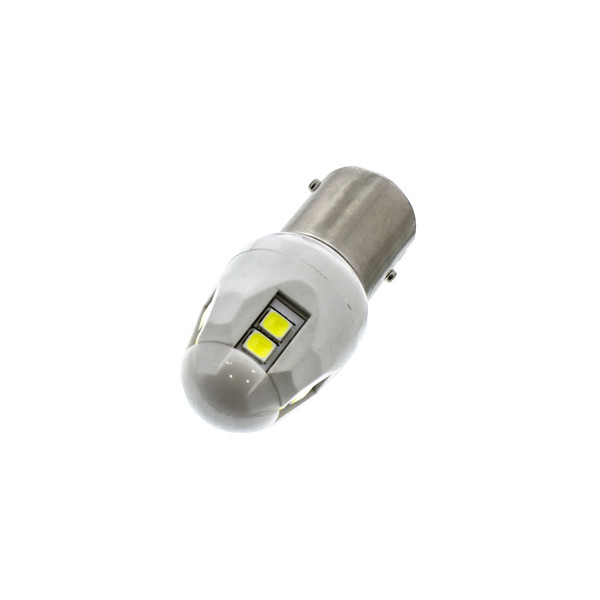 Replaces most #1157 and #P21/5W applications. 12 Volt, double contact with off-set pins. 8 High Power SMD LED's, 50 lumens / 150 lumens.