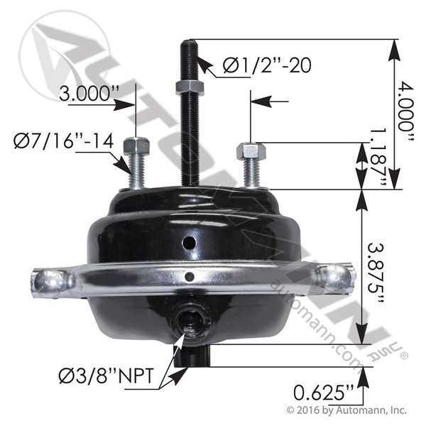 Service Chamber, Type 16 Long Stroke, 1/2in Push Rod, 2-1/2in Stroke