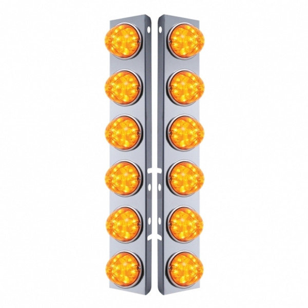 SS Front Air Cleaner Bracket W/12X 17 LED Watermelon Lights & SS Bezels For Peterbilt-Amber LED/Clear Lens (Pair)