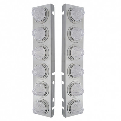 SS Front Air Cleaner Bracket With 12X 11 LED Watermelon Lights & Bezels For Peterbilt-Amber LED/Clear Lens