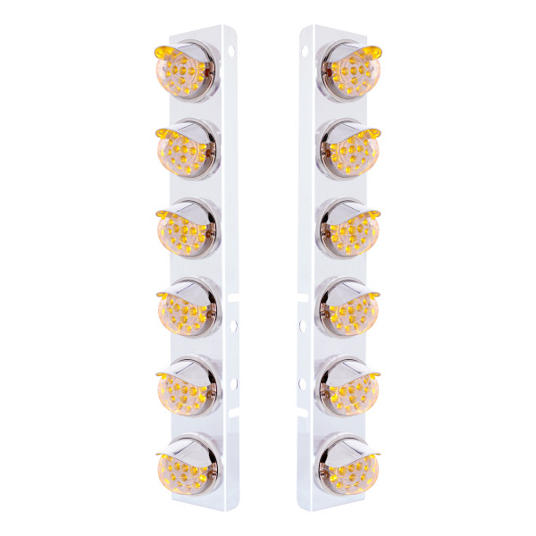 SS Front Air Cleaner Bracket With 12X 17 Amber LED Dual Function Reflector Lights & SS Visors For Peterbilt-Clear Lens