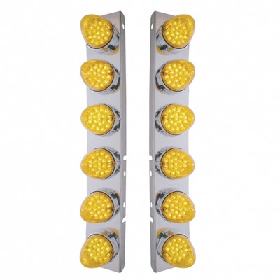 SS Front Air Cleaner Bracket With 12X 19 LED Bullet Style Lights & Bezels For Peterbilt-Amber LED/Clear Lens
