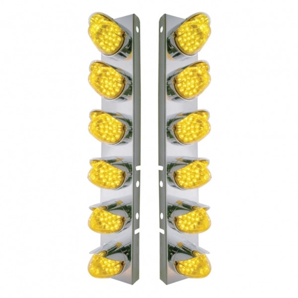 SS Front Air Cleaner Bracket With 12X 19 LED Reflector Lights & Visors For Peterbilt-Amber LED/Clear Lens